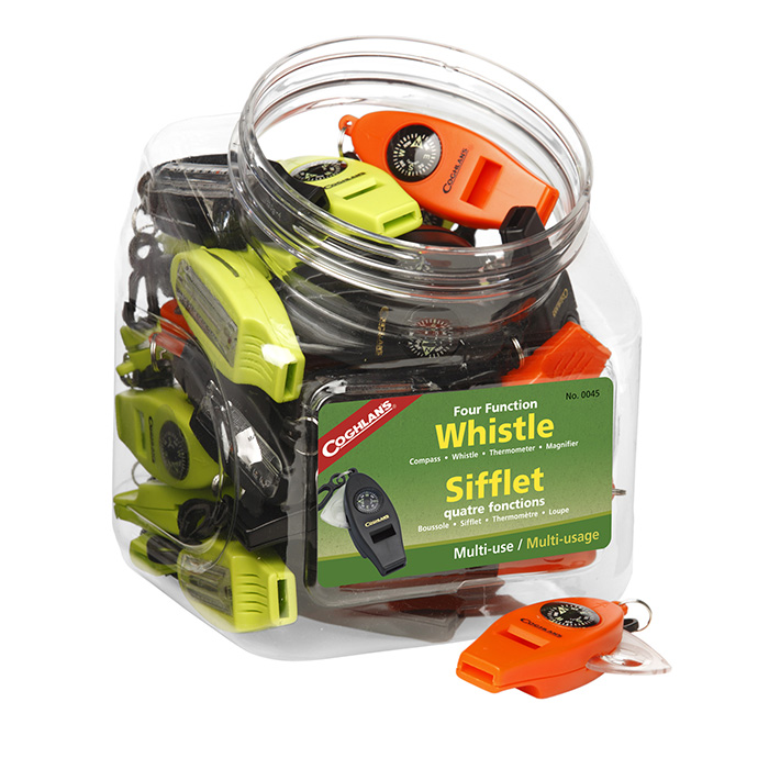 加拿大進(jìn)口哨子功能包括:哨子、放大鏡、溫度計(jì)和指南針有三種顏色:石灰綠、火焰橙和黑色